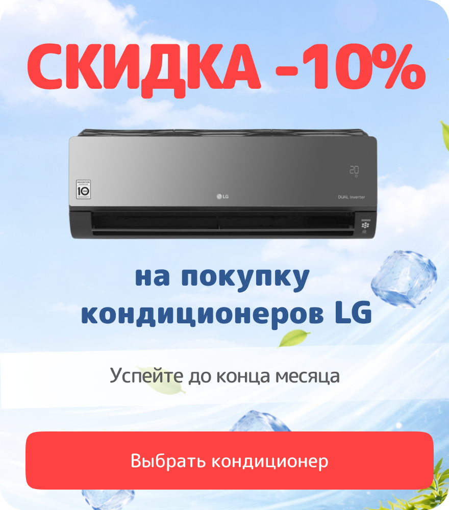 Много разнообразных акций и большой ассортимент. Подсказали по подбору кондиционера.